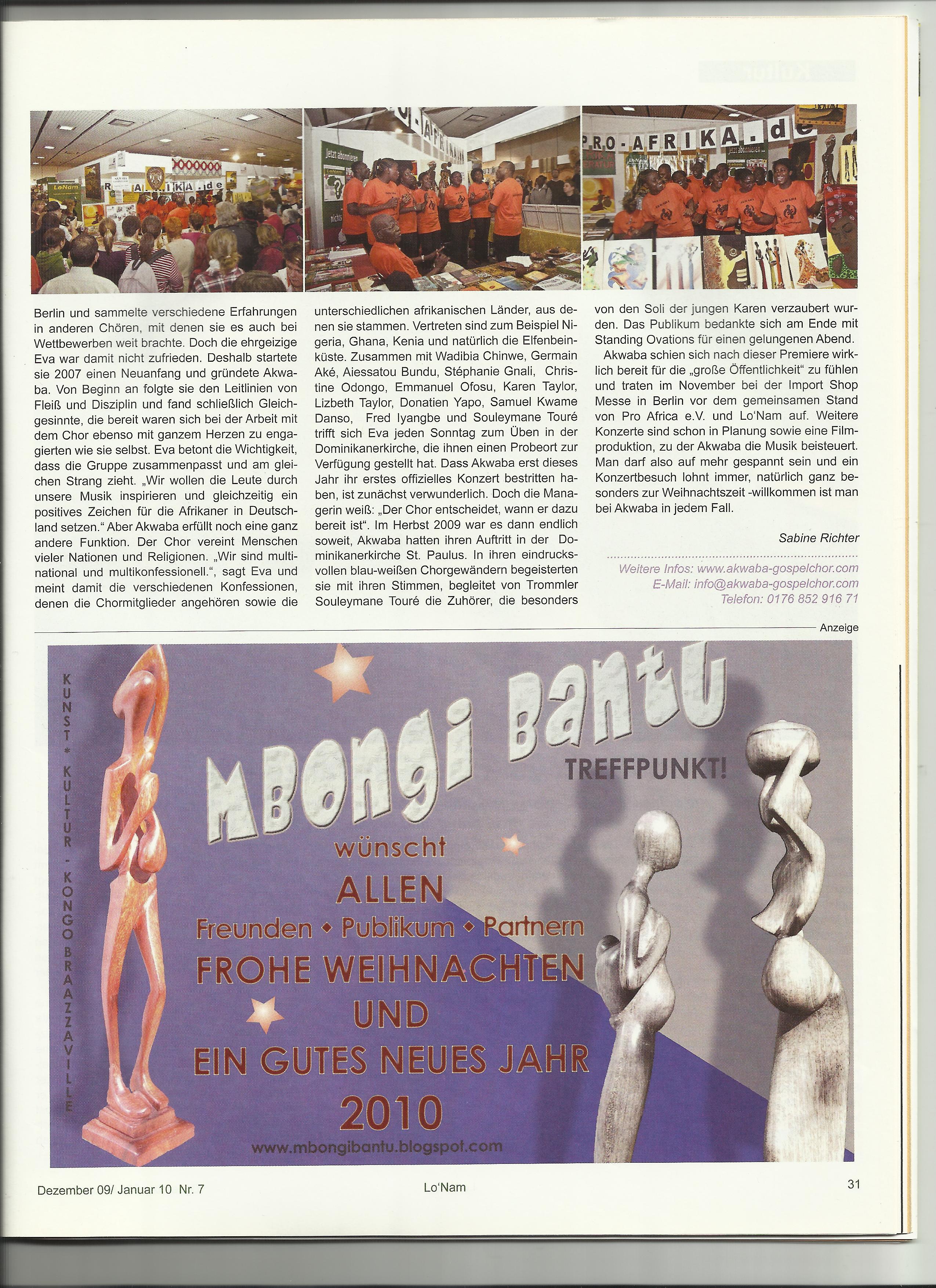 einmal soweit. Der Akwaba-Gospelchor hatte zum 2. Mal zu einem 1 ½-stündigen